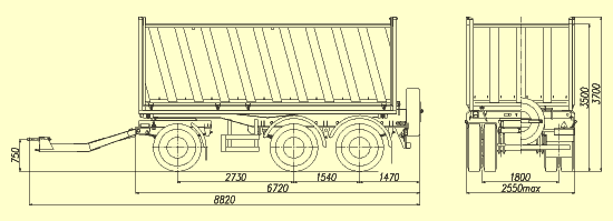 Габаритные размеры трёхосного самосвального прицепа, мм: |